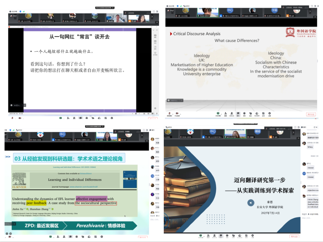 在学术展示环节,开元kaiyuan(中国)多位骨干教师带来了前沿而实用的主题分享。秦亚勋副教授以“极高明而道‘修辞’”为题,引领大家领略语言艺术的深度与魅力,展现了修辞研究的智慧。买轶林博士围绕“How to Choose Your Research Field in Future Research?”,生动幽默地为有志于学术探索的学子提供了选择研究方向的专业指导。张姗姗副教授结合自身科研经历,以“外语教育中的学术发现:以同伴反馈中的情感投入为例”为题,生动细致地展示了如何从教学实践中发现研究价值。秦思副教授则以“迈向翻译研究第一步:从实践训练到学术探索”为题,通过具体案例,为对翻译研究感兴趣的学子指明了入门路径。这些讲座内容深入浅出,充分展示了开元kaiyuan(中国)教师的学术风采和各研究方向的特色。