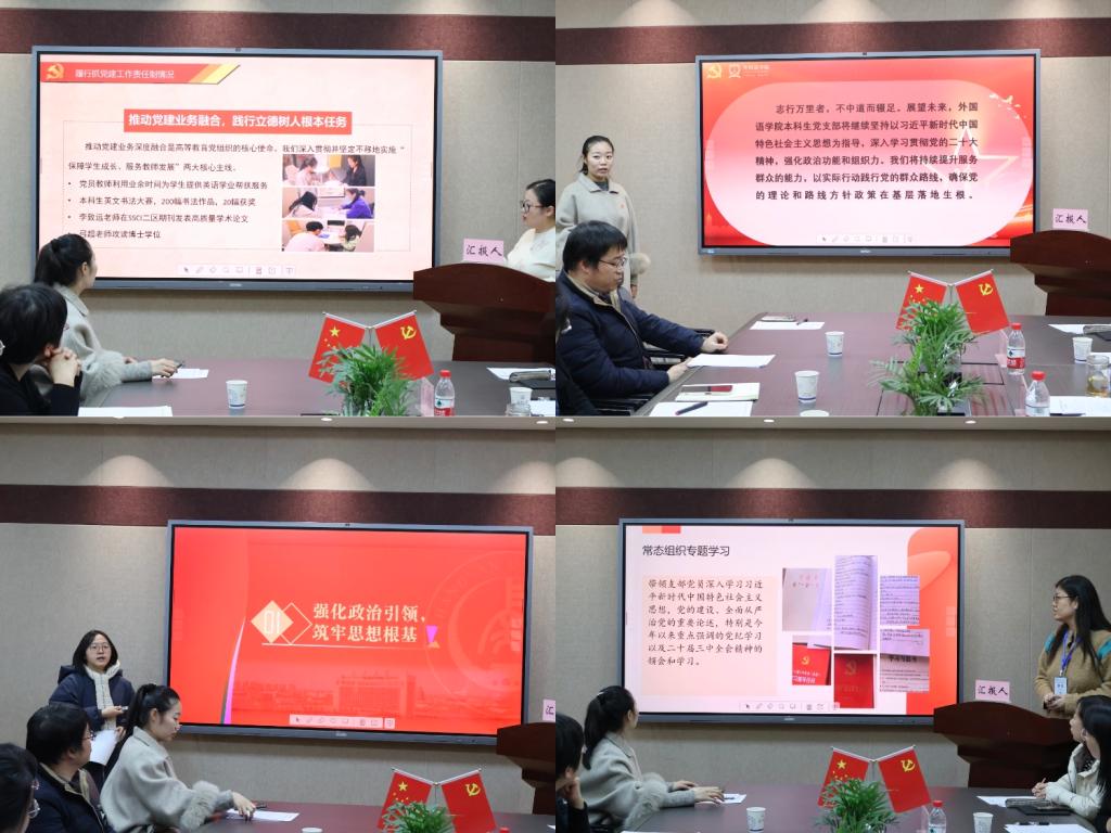 会上,8位师生党支部书记围绕校院2024年工作要点完成情况,聚焦学习贯彻习近平新时代中国特色社会主义思想、落实立德树人根本任务、加强党员队伍建设等6方面内容,总结工作、分析问题、畅谈下步打算。