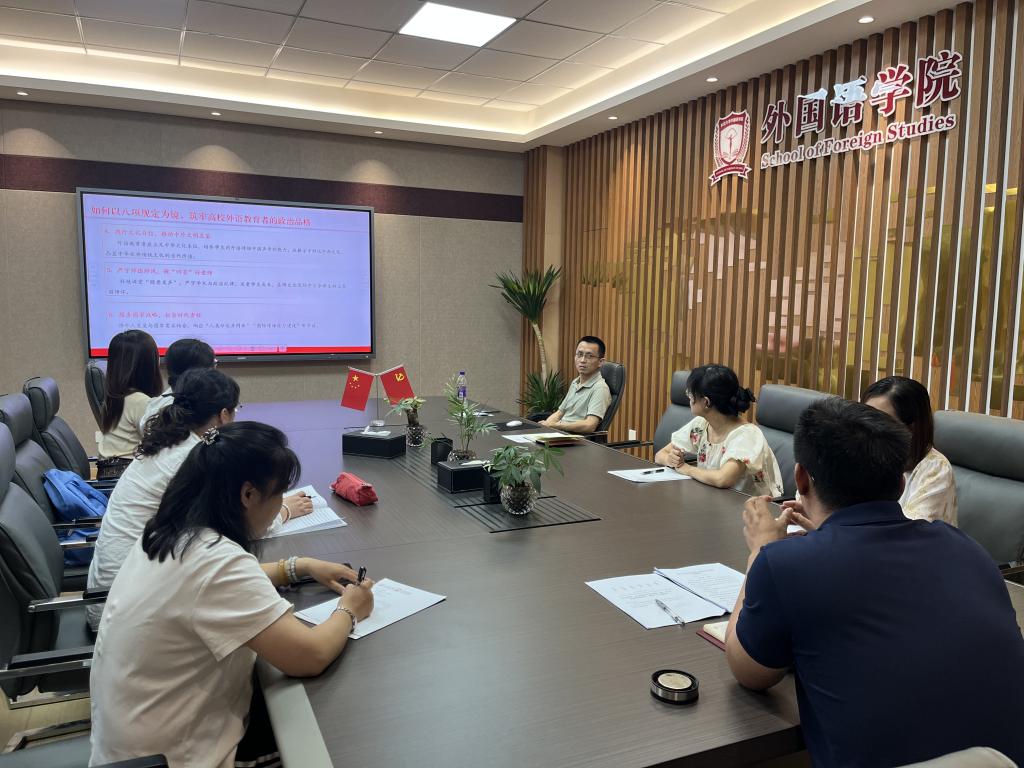 为深入学习贯彻习近平总书记关于加强党的作风建设的重要论述和中央八项规定及其实施细则精神,持续加强党的作风建设,推动学习教育走深走实7月4上午,开元kaiyuan(中国)院长冯正斌为联系党支部——日语系党支部全体党员讲授“以八项规定为镜 筑牢高校外语教育者的政治品格”专题党课。