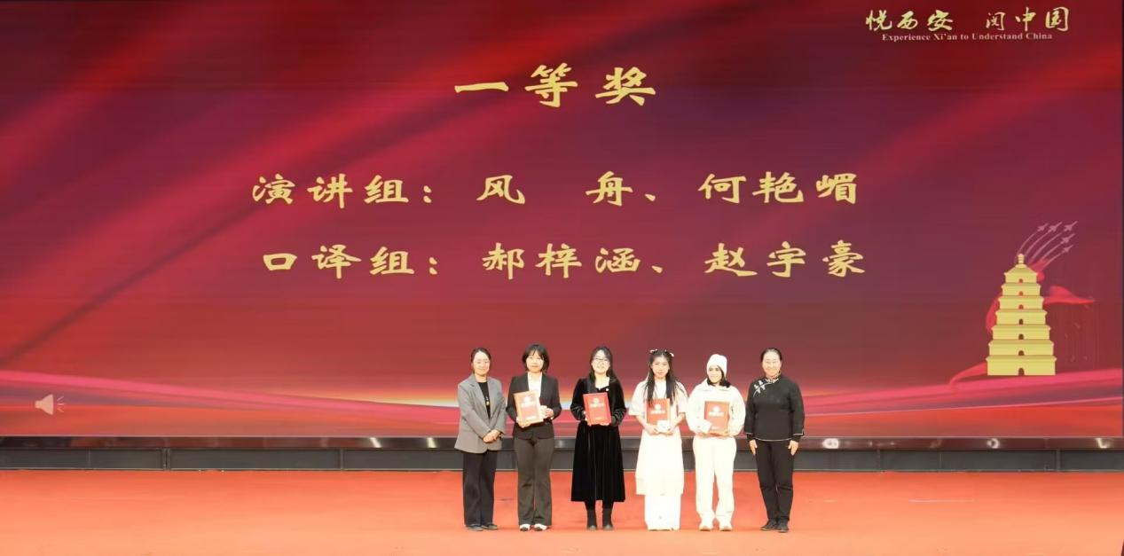 线下决赛于12月15日举行。口译组选手围绕西安历史文化和经济发展进行演讲及交替传译,展现了高超的专业水平、语言能力和应变能力。经过激烈的角逐,我院郝梓涵以交替传译部分88.3分,英语演讲部分91.2分,总分89.46分获得口译组决赛第二名,并荣获一等奖,创造了我校在该项赛事中的最好成绩。