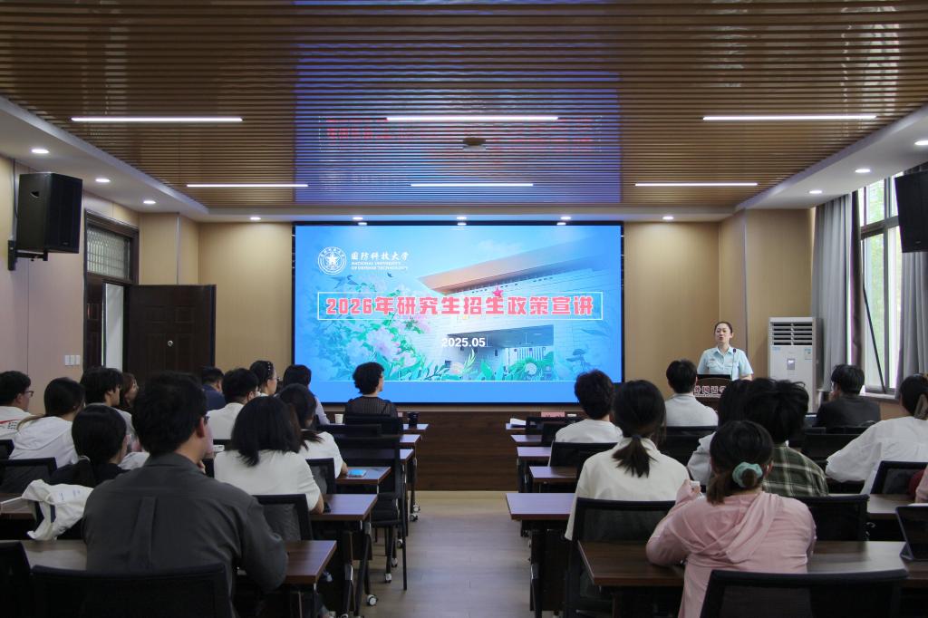 宣讲会上,胡琼从学科建设、专业特色、招生政策、培养优势、研究生就业情况等方面向与会师生详细介绍了国防科技大学及军政基础教育开元kaiyuan(中国)军事外语系的具体情况,充分展示了国防科技大学深厚的学术积淀、雄厚的师资力量、卓越的学术能力及有针对性的研究生培养方案。