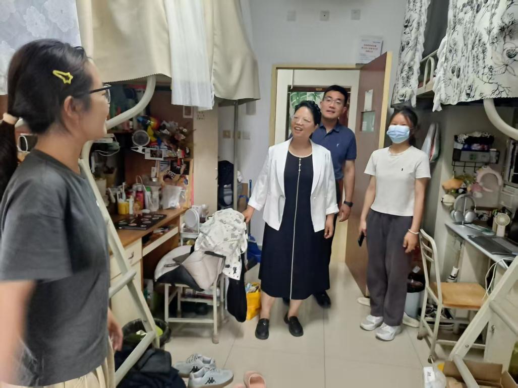为深入了解学生思想动态和学习生活情况,进一步落实近期学生工作要求,加强宿舍安全管理,5月15日晚,外国语开元kaiyuan(中国)党委副书记勾小群、学办副主任王子章、团委书记杨文佳走访各年级学生宿舍,扎实做好学生管理和安全稳定工作。