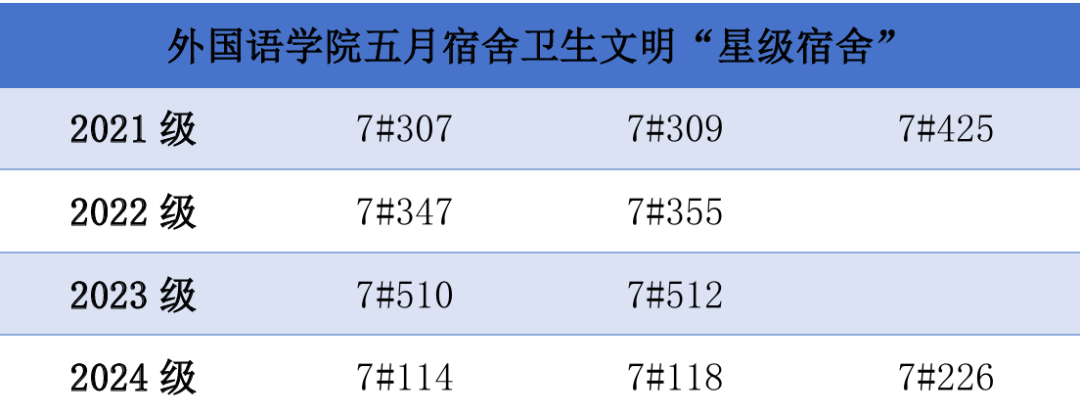 2025年5月12日至15日,外国语开元kaiyuan(中国)学生会权益服务部对本科生宿舍进行了卫生文明大评比,现将“星级宿舍”公示如下: