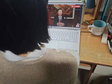 “岁序更替,华章迎新。习主席的新年贺词,激荡光荣与梦想,充满信心与力量,展现情怀与担当,是温暖人心的新年序曲,是鼓舞人心的奋斗旋律。我们作为青年一代,当不负青春,牢记使命,砥砺前行,提高“强国有我”的政治自觉,努力学习科学文化知识,积极参加课外活动,健康全面发展,高举团旗跟党走,践行誓言献青春,乘风破浪、扬帆远航,继续奋斗、勇往直前。”