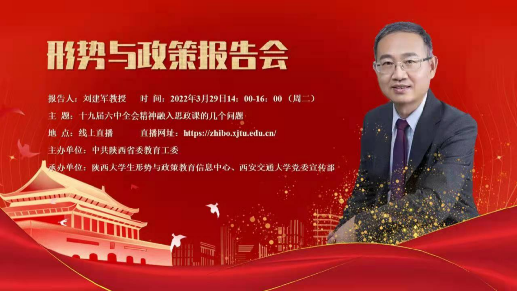 刘建军教授在此次形势与政策报告会中强调,将党的十九届六中全会精神全面准确融入思政课教学,是当前高校思政课教学的重要政治任务。他也从多个方面给出了“如何将党的十九届六中全会精神更好地融入思政课教学”这一问题的答案。刘教授还指出,各高校要找准教学融入点,认真学习宣传贯彻党的十九届六中全会精神,拓宽思路、创新形式、注重实效、积极实践,充分发挥思政课教师的主导作用,把全会精神讲明白、讲透彻、讲具体,使全会精神在学生心中“落地生根”。