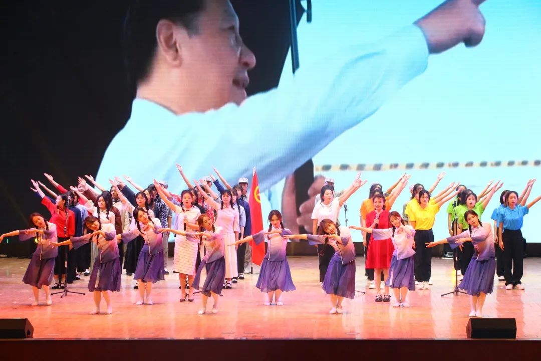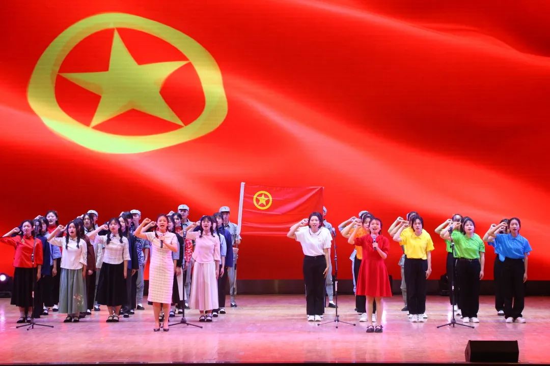 比赛现场,“一百年前”的青年身着民国服装,昂首挺胸,眼神坚定;“一百年后”的青年身着亮色T恤,活力四射、青春洋溢。同学们身着绿、黄、橙、蓝的衬衫,活力四射,青春洋溢,成为了舞台上最为亮丽的风景线。舞蹈演员们伴随着音乐声与诵读声翩翩起舞,舞出青春的动人风采。青马班成员在高举的团旗下庄严宣誓,以最饱满的热情、最铿锵的声音向建团百年致敬,为建团百年献礼!