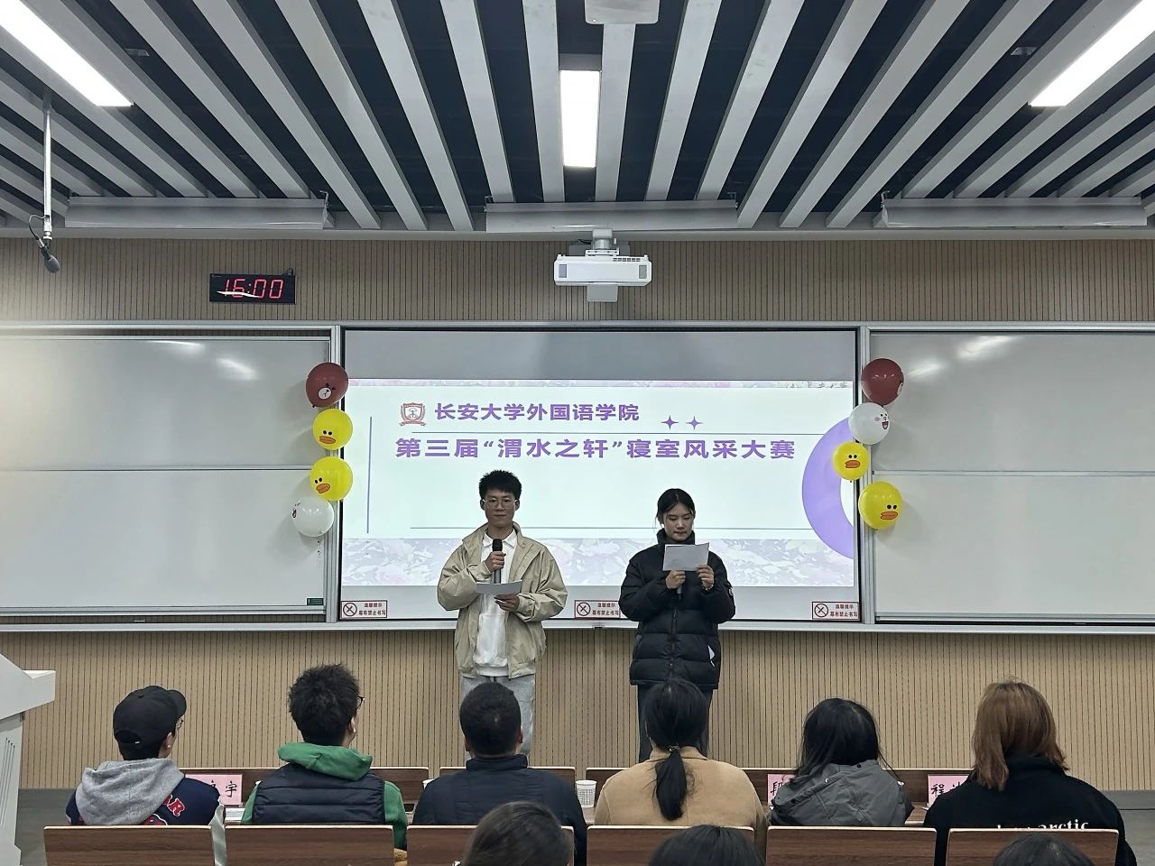 主持人樊宇轩和刘琳上台介绍了本次大赛的流程和规则,宣布本次外国语开元kaiyuan(中国)第三届“渭水之轩”寝室风采大赛正式开始。