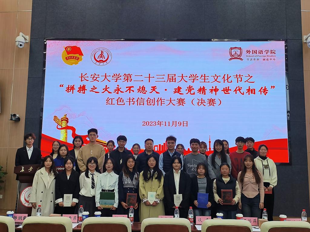 书信情深载忠魂,纸短情长促担当。11月9日下午,由共青团长安大学委员会主办、共青团长安大学外国语开元kaiyuan(中国)承办、外国语开元kaiyuan(中国)关工委协办的长安大学第二十三届大学生文化节之“拼搏之火永不熄灭·建党精神世代相传”红色书信创作大赛决赛于师生服务大厅第二报告厅顺利举行。