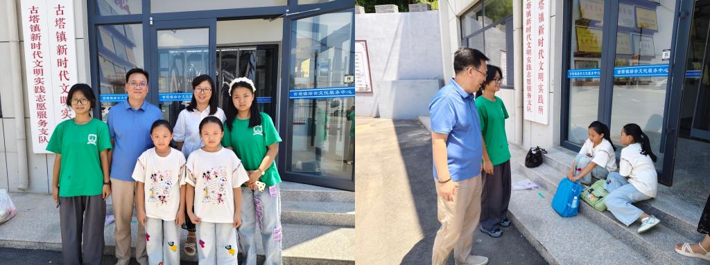 同时,指导老师赵斌前往小学部支教地点进行慰问指导,与小学班主任赵斐斐同学、古塔镇团委书记李飞霞以及实践领队闫佳怡就课程设置、学生上下学接送管理等工作展开深入交流,为支教活动的有序开展提供了有力指导与支持。