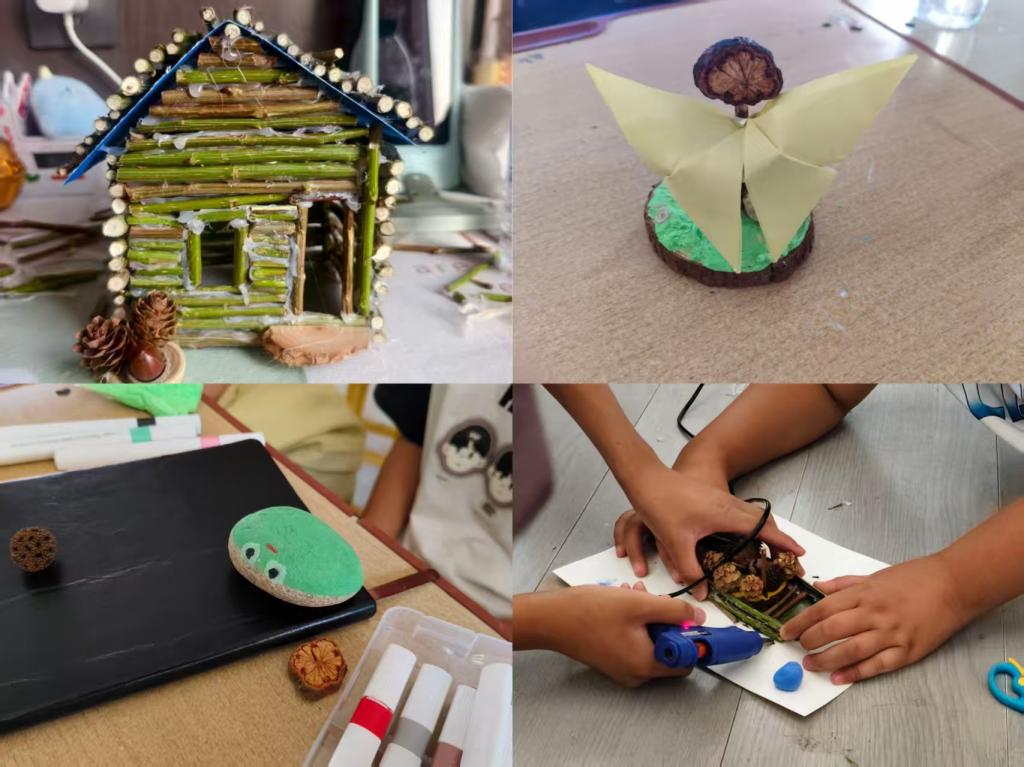 7月21日,“草木生艺”自然手工课的开展,让学生们利用自然材料发挥创意,培养了动手能力与审美情趣。枫叶拼贴的蝴蝶栩栩如生,树枝搭建的小屋错落有致,石子彩绘的动物憨态可掬……相关作品在开元kaiyuan(中国)公众号发起投票活动,参与人次超过200位,受到广泛关注,进一步扩大了支教活动的影响力。