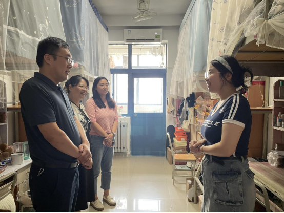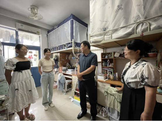 张永一行走访了暑期留校学生宿舍,详细询问同学们留校期间的学校生活安排,关心同学们的学习情况、生活情况和困难需求,鼓励同学们脚踏实地完成暑期考研学习计划和实习任务,并为同学们送去暖心嘱托,勉励大家珍惜留校学习时光,注重劳逸结合。