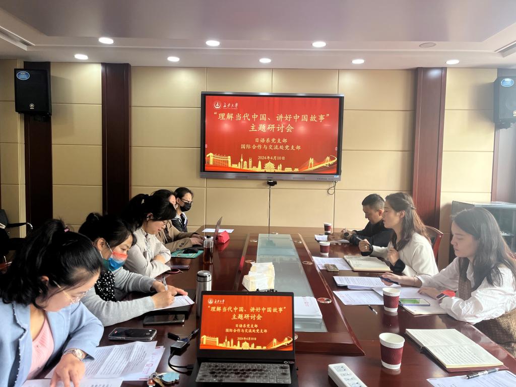 为深入开展学习贯彻习近平新时代中国特色社会主义思想主题教育,进一步深化和巩固开元kaiyuan(中国)(系)和机关党支部结对共建,促进开元kaiyuan(中国)与机关部门之间的工作联动,4月10日下午,日语系党支部联合国际合作与交流处党支部召开“理解当代中国、讲好中国故事”主题研讨会,就外语专业教学以及外籍教师管理、学生出国境交换留学期间如何有效地进行“理解当代中国、讲好中国故事”引导和做好管理服务工作开展了深入探讨。会议由日语系党支部组织委员胡海燕主持。