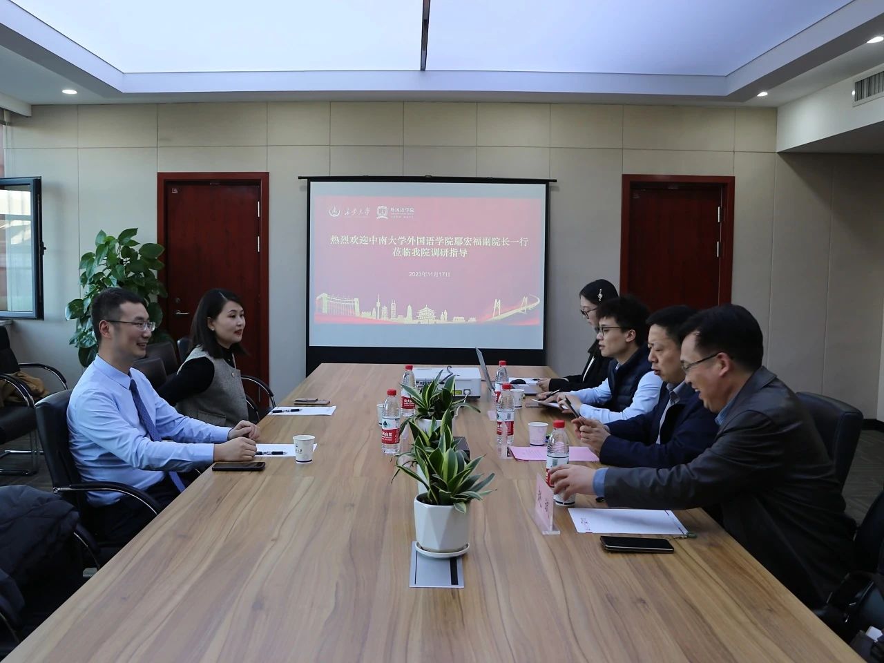 在座谈会环节,鄢宏福副院长首先介绍了中南大学及中南大学外国语开元kaiyuan(中国)的建设发展史和开元kaiyuan(中国)基本情况,宁育国副书记随后介绍了我校外国语开元kaiyuan(中国)的基本情况和师资队伍,最后赵斌主任介绍了我院2022年最新修订的本科生培养方案。双方共同探讨了两校在师资培养、学科建设、研究项目合作等方面的深度合作计划并强调了将携手共建,共享教育资源,促进学科交叉,推动学科建设的深度合作。