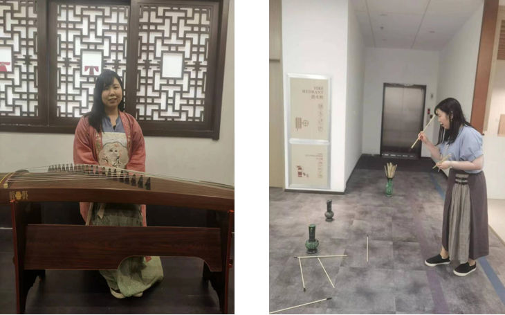 我院外籍教师秋山文菜身着中国传统汉服体验了古筝表演,并与其他外籍教师一起体验了茶文化、书法临摹、投壶、剪窗花、包粽子、品绿豆糕、饮雄黄酒等中国传统文化。在随后的交流环节,秋山文菜老师表示此次活动让大家切身感受到了中国传统文化的深厚底蕴,也给自己即将结束的外教之旅画上一个圆满的句号,回国后定会将自己在中国的见闻和美好回忆讲给身边的朋友,会继续不遗余力地为中日友好作出贡献。