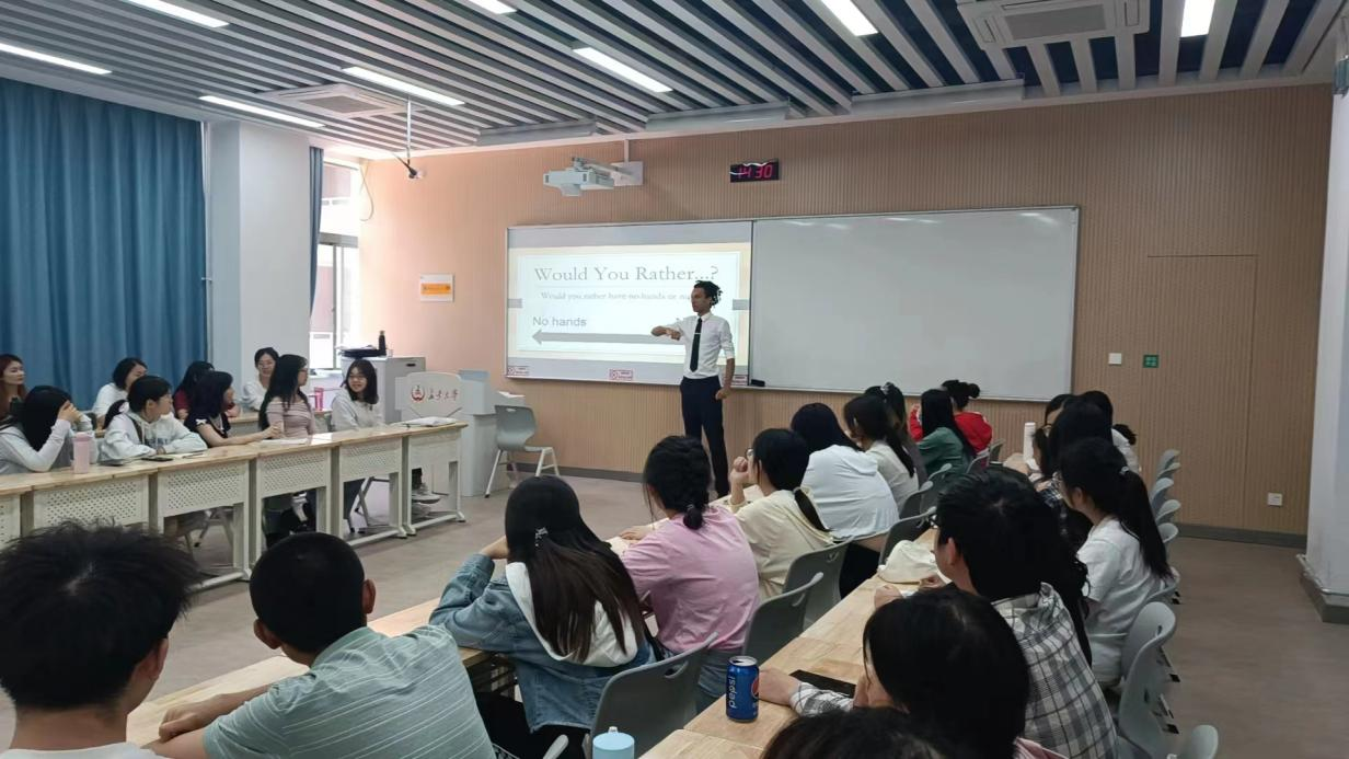讲座通过一个热身小游戏拉开序幕,Kinuthia Kagonga老师向同学们展示了几道选择题,同学们自由进行选择并思考选择的原因,并由不同选择的队伍进行反驳。通过这一环节,调动了同学们的注意力和思考力,为后续的讲座内容铺垫了良好的氛围。