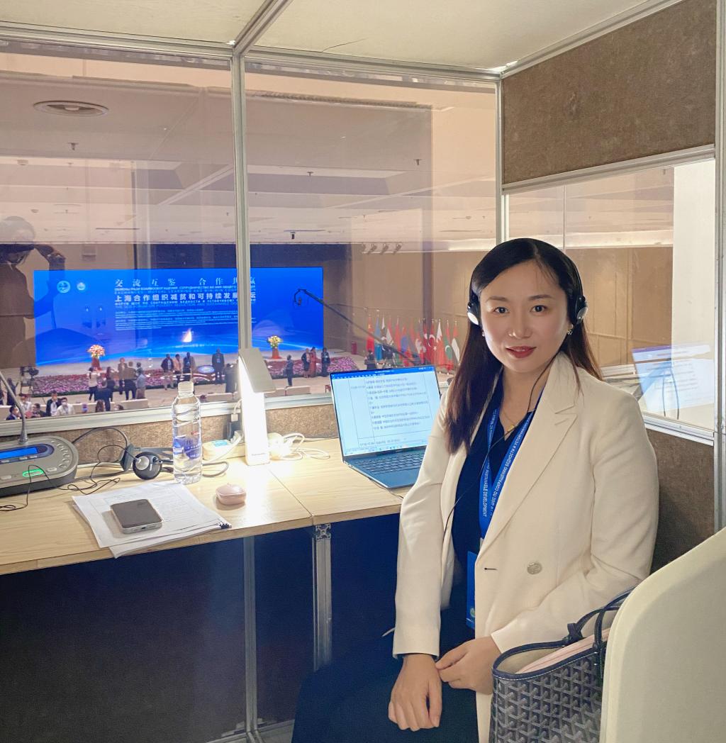 会议期间,李菁老师跟随上海合作组织减贫与可持续发展论坛考察团开展杨陵-延安实地考察活动,观摩考察了国家级洛川苹果产业科技中心、陕西顶端果业科技有限公司、甘泉县纸房村和延安枣园革命旧址等多家公司和科技创新中心。李菁老师负责考察行进中的媒体车直播翻译和参观时的同步翻译,让70多名中外嘉宾充分感受减贫和可持续发展领域的“延安样本”,获得嘉宾和与会代表的一致好评。