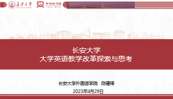 在院系交流环节,大英二部主任陈建琦作了题为《长安大学大学英语教学改革探索与思考》的分享,就我校大学英语教学课程设置、教学改革等方面情况进行了介绍,并就虚拟教研室下一步工作做出发言,为教研室的发展出谋划策。