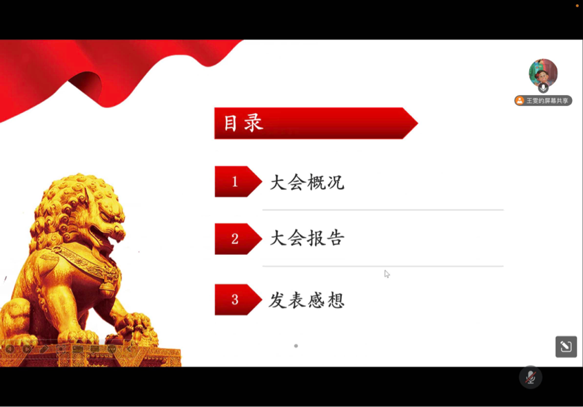 本次学习由宣传委员王雯担任主讲,她首先讲解了大会概况,从大会主题、报告内容和意义三个方面阐述了这次大会的重要性。在原文报告的解读部分,王雯同志选择了“极不寻常、极不平凡的五年”“新时代十年的伟大变革”“五个必由之路”三组关键词来解释报告内容,由此使全体党员对二十大报告的内容和精神有了更全面深刻的理解。
