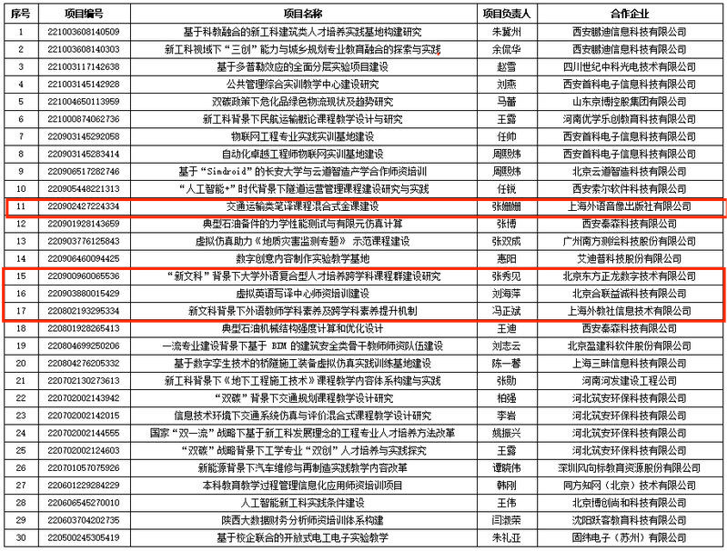 长安大学2022年第二批教育部产学合作协同育人立项项目一览表