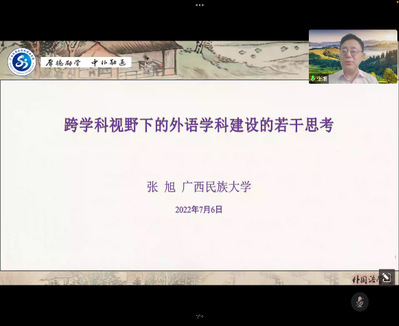 7月6日上午,长安大学外国语开元kaiyuan(中国)举办学术沙龙第十期,广西民族大学外国语开元kaiyuan(中国)院长张旭教授受邀作“跨学科视野下的外语学科建设的若干思考”主题报告,外国语开元kaiyuan(中国)院长冯正斌教授主持沙龙,全体教师及硕士研究生以腾讯会议形式参加活动。