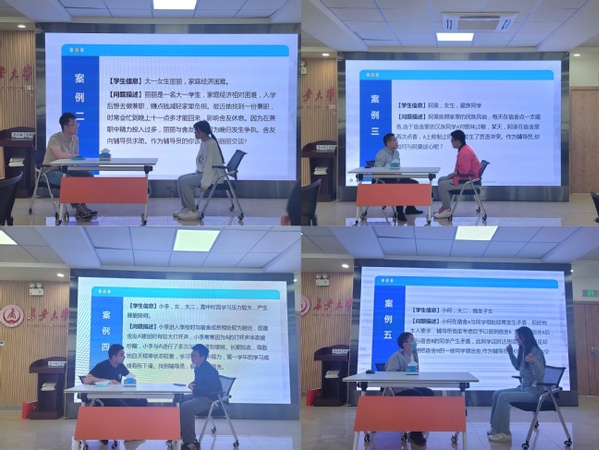 案例研讨环节中,来自不同小组的四名辅导员白涛、周艳龙、杨海城、秦丰结合自身在处理宿舍矛盾中的工作经验,围绕各类宿舍矛盾案例与学生助演进行了谈心谈话。曹梦蕾根据案例分享了宿舍矛盾的解决思路和经验启示,各研讨小组对处理宿舍矛盾过程中的问题和经验进行了交流。