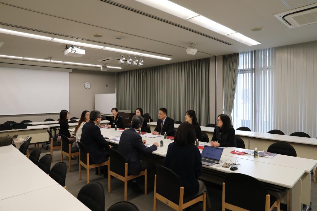 在筑波大学访问期间,国际教育交流中心主任小野正树教授、筑波大学中国事务所(原)所长佐佐木勳人教授热情接待了我校访问团。双方就下一步联合开展“一带一路”沿线区域国别研究、联合举办国际交流活动、互派高级访问学者、加强学生联合培养等事宜交换了意见。期间,访问团还实地考察了筑波大学中央图书馆、国际教育交流中心,就筑波大学在全面推进国际化办学过程中,如何加强国际合作与交流,开展海内外高层次人才引进、推进全英授课国际课程体系改革、扩大留学生规模等进行详细调研学习,并对我校国际化办学和招收国际留学生的推进政策进行了积极宣介。