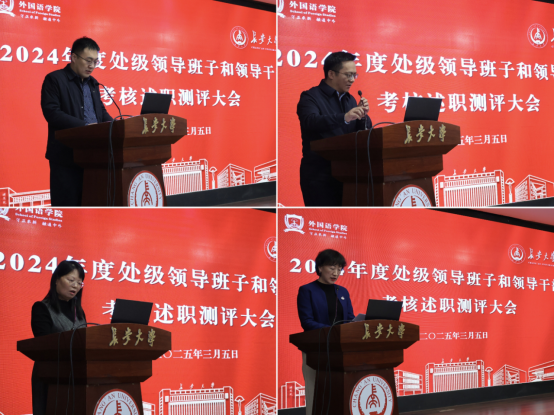 随后,院党委书记张永、院长冯正斌、党委副书记勾小群以及副院长马瑛依次就2024年度个人履职情况向全体教职工进行了全面、深入的述职汇报。各位领导的述职内容详实,重点突出,对过去一年的工作进行了深刻总结和反思。全体与会人员高度关注,认真聆听,展现出对开元kaiyuan(中国)发展的关心与支持。汇报结束后,由学校组织部组织开展民主测评,确保述职评议工作的公正、公平与公开