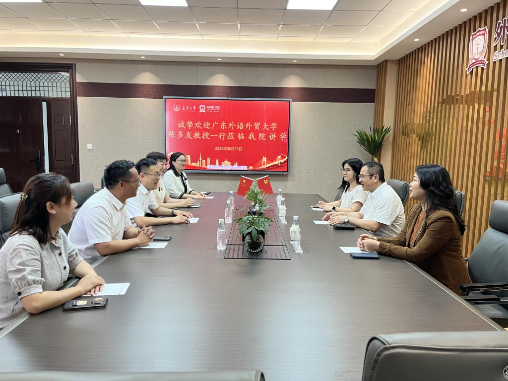 讲座结束后,我院日语系教师与广东外语外贸大学一行就人工智能时代日语专业的转型发展策略、课程体系建设等问题进行了深入交流。与会教师纷纷表示将此次深度交流尽快运用到专业建设当中,多方探索适合我校行业特色的日语人才培养路径。