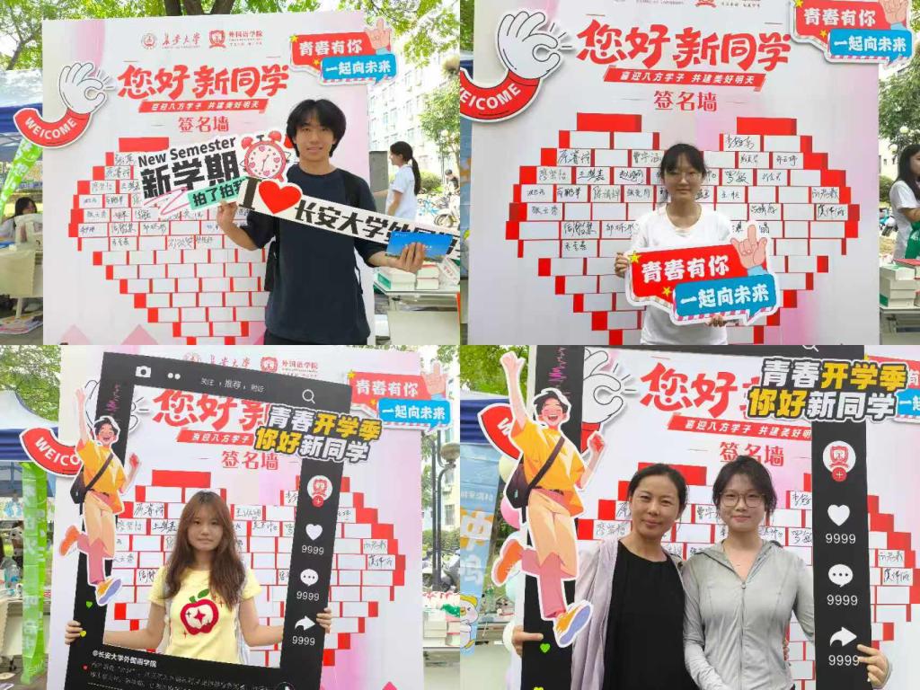 在迎新帐篷点一侧,25级的新生们在学长学姐的带领下有序地来到签名墙前郑重地地在新生的第一份“集体名单”上写下自己的名字。这一刻,他们的身份从访客正式转变为长安大学这个温暖大家庭的一员。随后,新生和家长们纷纷在签名版前合影留念。家长们脸上洋溢着骄傲与喜悦的笑容,学生们眼中则充满了对未来的憧憬。