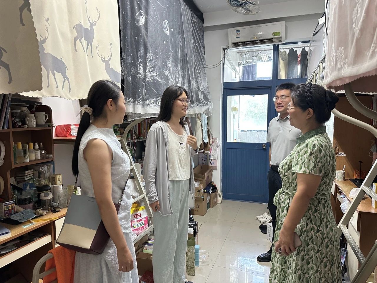 为深入了解暑期留校学生的学习、生活情况,切实加强对留校学生的关心关爱和安全教育,7月26日下午,外国语开元kaiyuan(中国)党委副书记勾小群、学办副主任王子章、团委书记杨文佳一行深入学生宿舍,亲切看望并慰问了暑假期间仍坚守在校学习、实习的学生,为他们送去开元kaiyuan(中国)的殷切关怀和夏日的清凉问候。