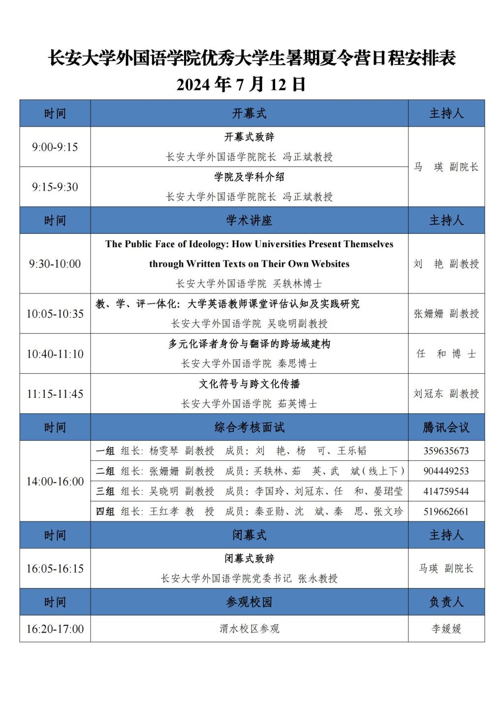 7月12日,我院成功举办2024年全国优秀大学生暑期夏令营。本次夏令营采取线上线下相结合的模式,共有来自中国地质大学、大连外国语大学、西安建筑科技大学、河北师范大学、山东农业大学等40余所高校共计60余名同学参加。夏令营由副院长马瑛主持。