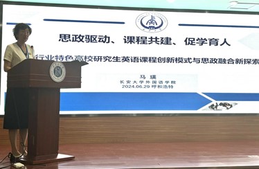 论坛围绕人工智能时代研究生英语教育教学创新及教师发展、四新背景下的公外研究生英语建设与发展、课程思政与研究生学术英语教学创新等主题分四个分论坛展开。马瑛团队在第四分论坛做了题为“思政驱动、课程共建、促学育人—行业特色高校研究生英语课程创新模式与思政融合新探索”的发言,聚焦长安大学课程思政与研究生英语教学融合发展,分享校本特色思政教学案例,汇报我校研究生英语课程思政示范课建设路径,并分享了阶段性成果。