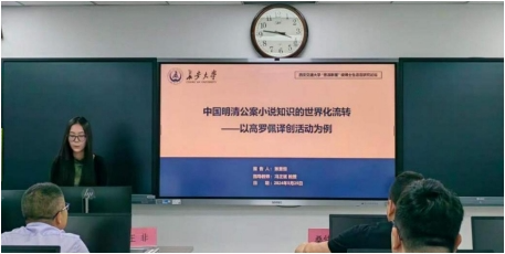 论文宣读环节,张昱恒聚焦高罗佩“主体+属性”和“主体+主体”两类译创式“求真求善”活动,从知识生产和存在的基本原理,探讨“译创”模式下明清公案知识的世界构建之行。上世纪四十年代,人类对知识的认知需求及认知偏差促使高罗佩译创为径,求真求善,开启了中国明清公案小说于世界范围的流动历程;在知识的流动过程中,其历史属性推动高罗佩译创式“求真求善”,完成了知识的加工重构,最终实现明清公案知识的“真善合美”,达成地方性知识的世界性认同。