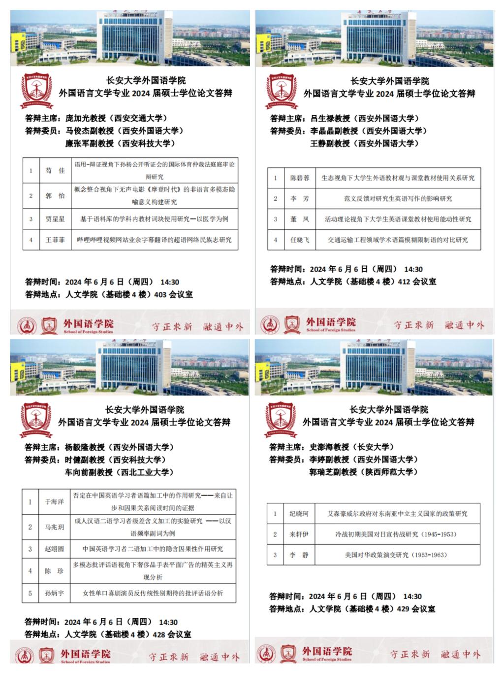 6月6日下午,我院外国语开元kaiyuan(中国)外国语言文学专业2024届硕士生学位论文答辩在南校区北院基础楼举行。此次答辩邀请了校内外的专家学者共同见证外院学子们硕士阶段学术探索的辛勤成果。