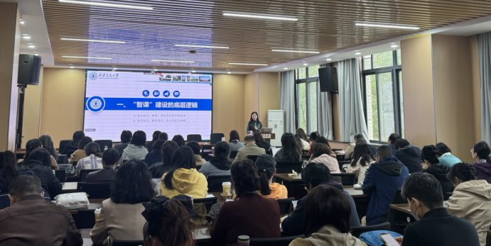 钱希教授在报告中明确指出,“智课” 建设是重构未来教育生态的关键抓手。她着重强调,在 GenAI 技术飞速迭代的当下,技术并非削弱教师的主体性地位,反而在 “师 - 生 - 机 - 环” 多维互动体系中,让教师的引导、赋能作用愈发凸显。钱希教授结合多个案例展示了智慧课程在教学设计优化、教学资源开发及学习效果评估等关键环节的创新应用—— 从基于 AI 技术的个性化学习路径智能生成,到多模态数字教材的研发与课堂实践,为在场教师提供了直观的参考范例。同时,钱希教授特别提醒,智慧课程的核心价值始终围绕“学生发展” 这一根本目标,技术赋能的最终目的是实现教学过程的精准化适配、多元化互动与人性化关怀。她还分享了团队主导研发外语智慧教学系统的经历,并结合国家级一流课程的建设经验,提出观点:“智课” 建设必须在技术前沿性与教育本质规律之间找到平衡,坚决规避 “重工具应用、轻育人核心” 的认知误区,让技术真正服务于教育教学质量的提升。